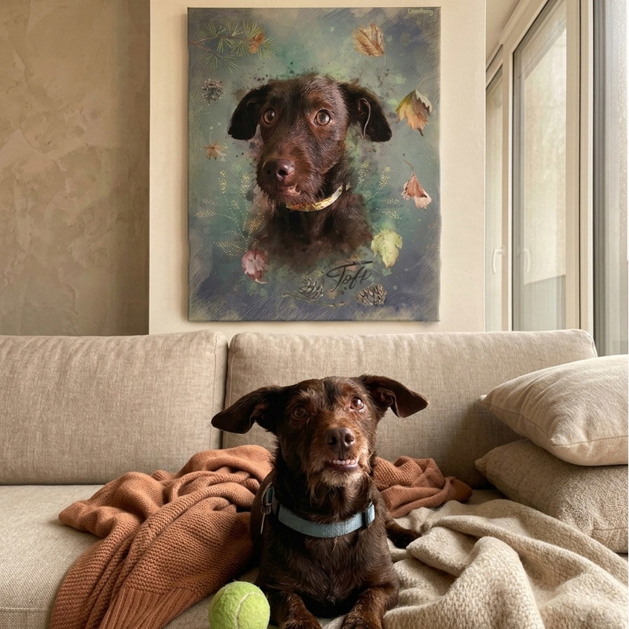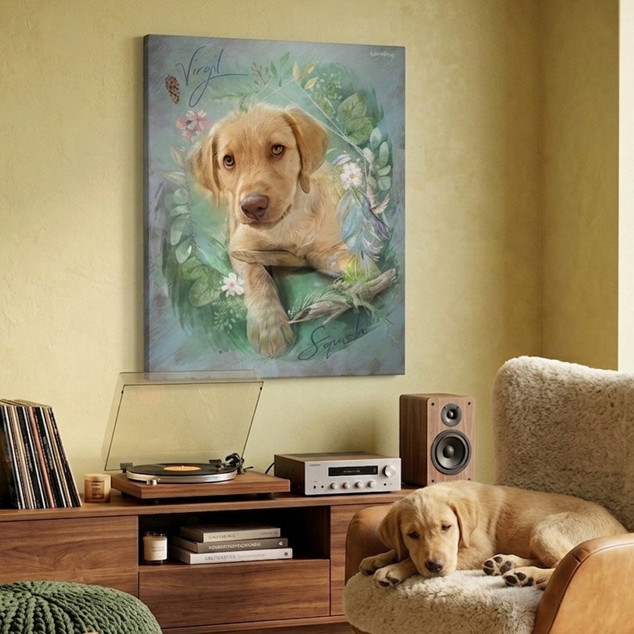 Tu perrito no es solo un animal, es familia. Es quien te recibe con alegría cada día y conoce todos tus secretos. ¿Por qué conformarte con una foto en el celular si podés tener una obra de arte en tu pared?