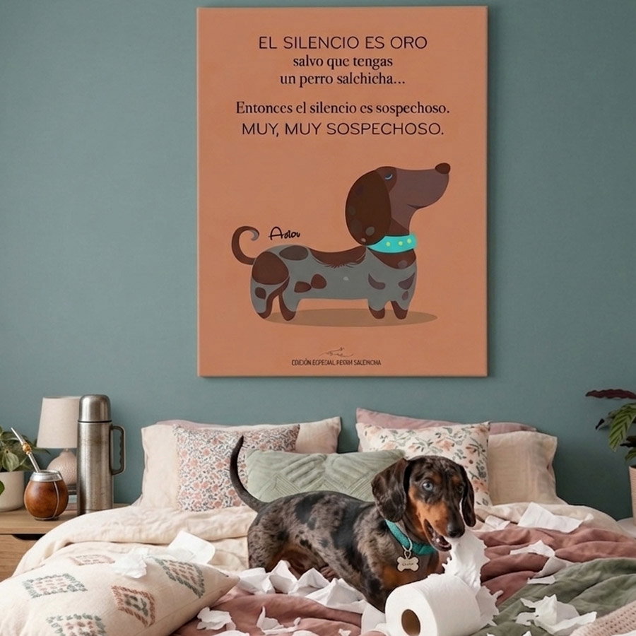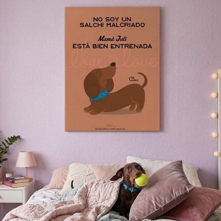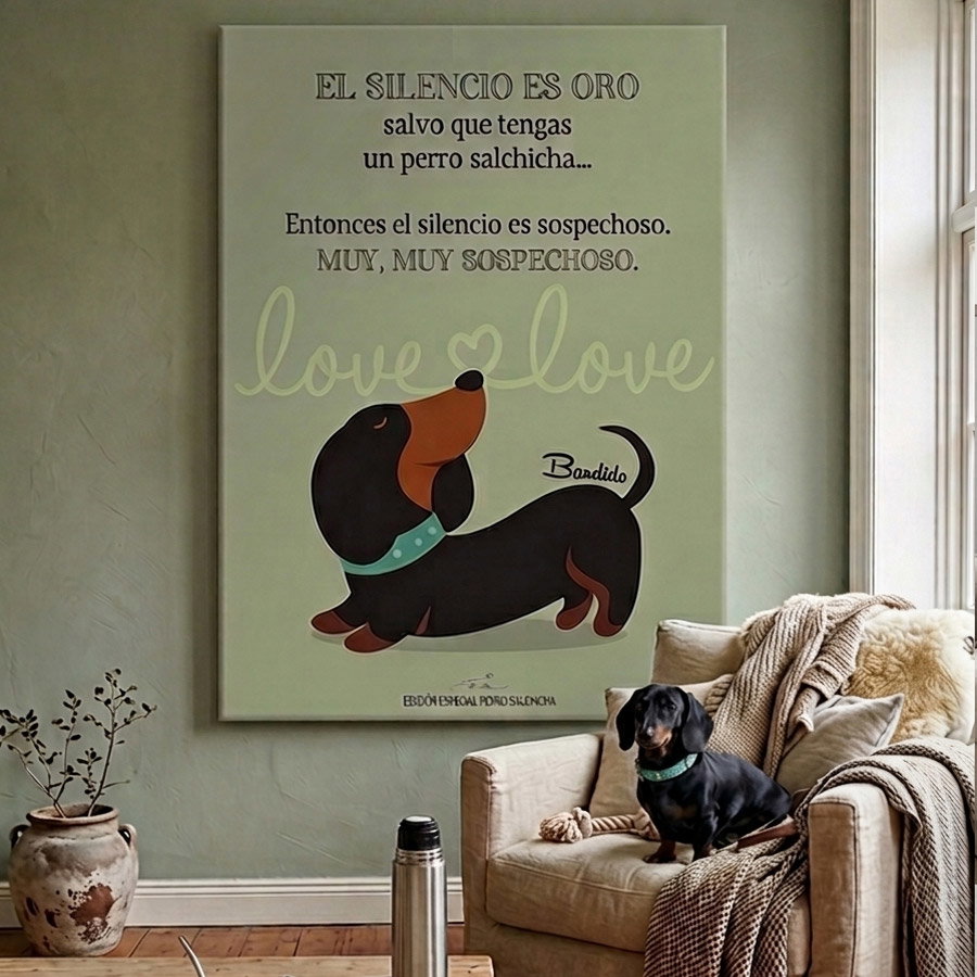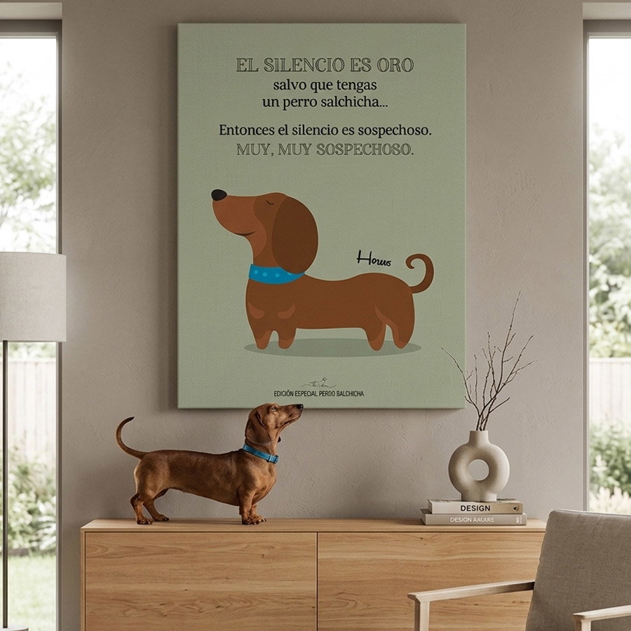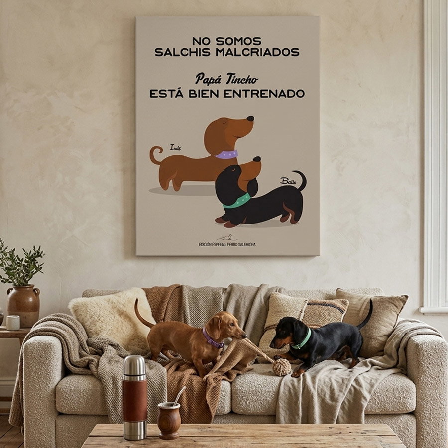 No es solo un cuadro, es una declaración de amor a esa silueta inconfundible y a su personalidad única. Capturamos su esencia con un estilo gráfico pop, minimalista y súper canchero, perfecto para darle onda a cualquier ambiente.