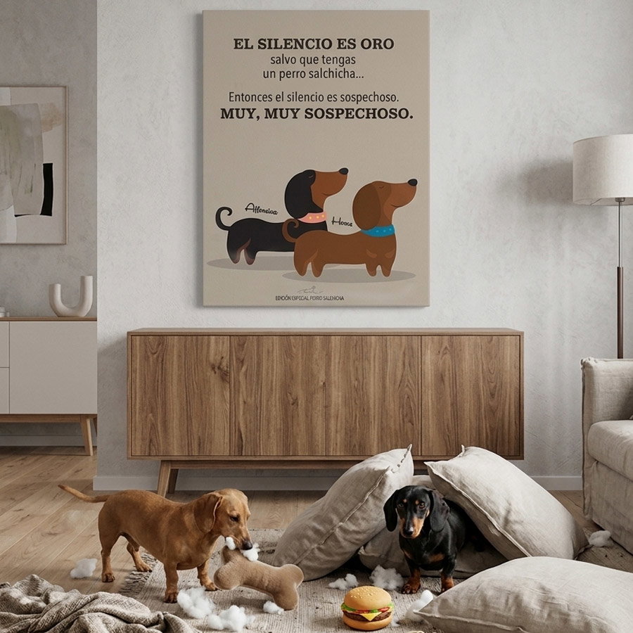 Personalización Total: Sumá su nombre, el de los "humanos" (Papá, Mamá, ¡quien quieras!) y elegí esa frase divertida que los define (como: "¿Malcriados? ¡Para nada!", "El silencio es sospechoso...", etc.).
